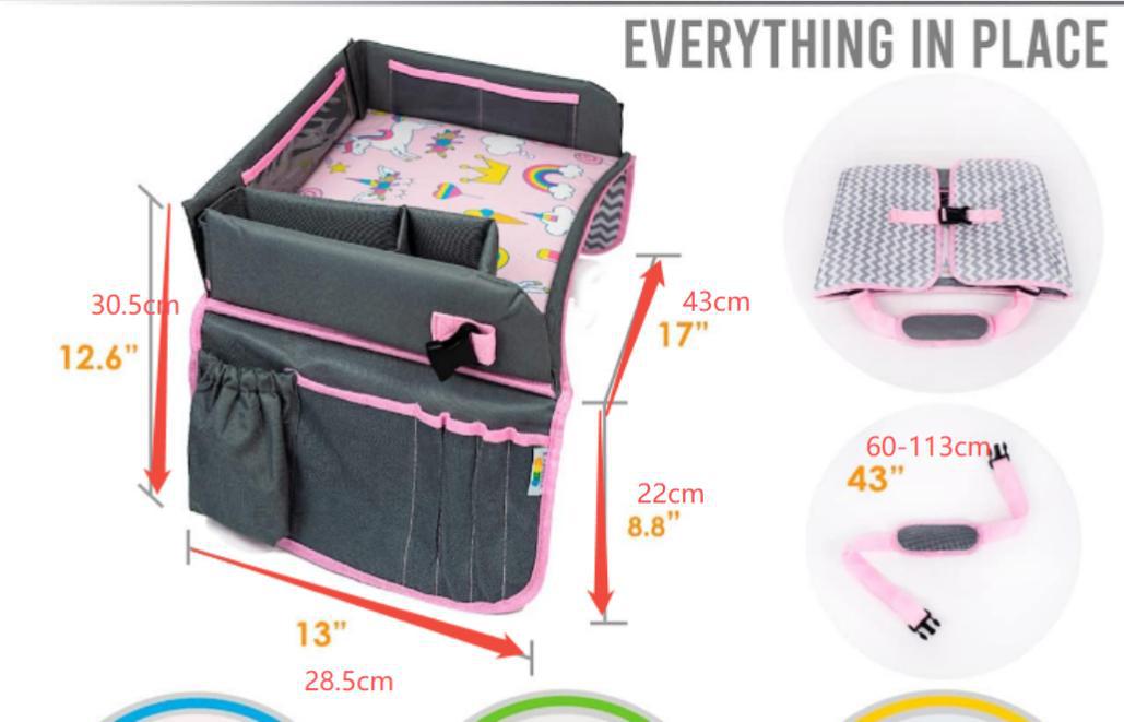 - Multifunctional use: Works as a kids’ travel tray and car seat organizer